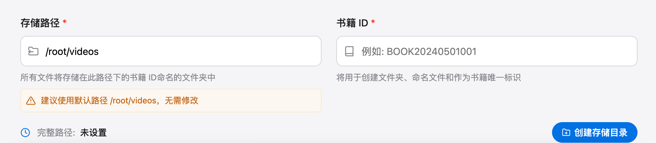输入后,需要手动点击,创建存储目录。这样,服务器就会出现这样一个文件夹,你后面上传的文件都会上传到这个文件夹中。